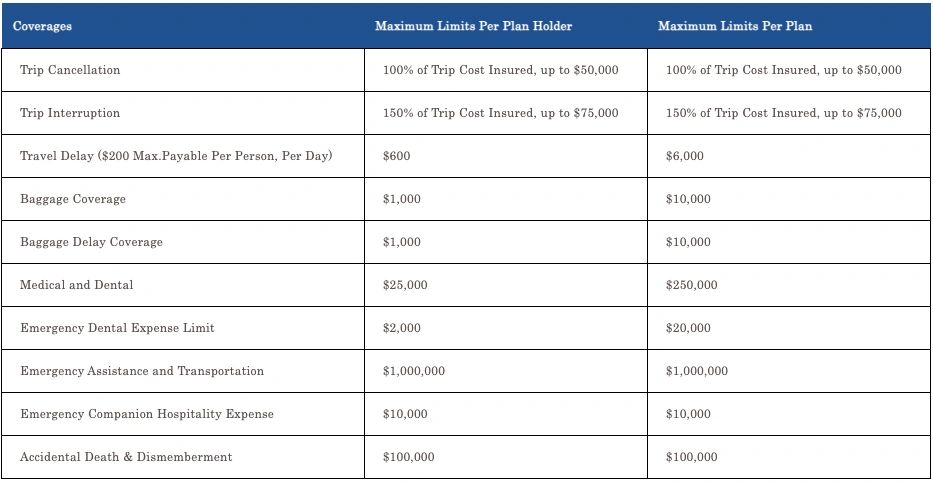 Benefits include emergency transportation to the nearest suitable hospital, help to return home if medically necessary, and expenses for a companion to visit you if you are traveling alone and are hospitalized for more than seven days.